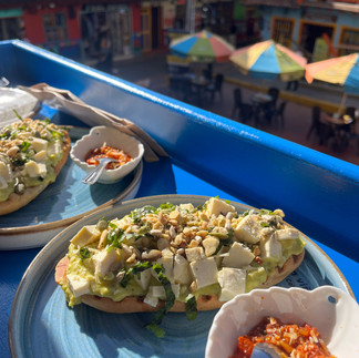 Zwischen all den Souvenirläden mit „Handwerkskunst“ gab es auch mal Galerien und Graffiti und wir liefen die Gassen bergauf, bergab. Wir hatten Zeit und bogen mal nach links, mal nach rechts, hoch zu einer kleinen Aussicht, grüßten immer freundlich und kauften Früchte, u.a. eine ganz neue, Mango-ähnliche. Der Hunger gesellte sich zum Durst dazu und im wildesten, buntesten Getümmel setzten wir uns auf den sehr schmalen Balkon eines Cafés, bestellten abgefahrene kühle Schoko-Kaffee-Getränke und jeder eine Avocado-Schnitte. Wir beobachteten eine ganze Weile das irre Selfie-Treiben auf der Treppe und starrten uns förmlich die Augen aus dem Kopf. Das war echt irre, was hier abging…und wie manche aussahen mit gekauftem Poncho und ausladendem Hut. Lächerlich, wir hätten hier ewig sitzen können. Aber die Sonne knallte auf die Oberschenkel und ein bisschen bummeln stand noch an.
