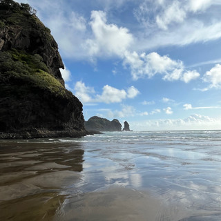 Unser Heuschnupfen kam nun so richtig in Fahrt, sodass wir halb sterbend am Auto erstmal Tabletten einwarfen, dann ging’s tanken und dann zurück. Leider hielt ein Unfall alles auf und verwarf unseren Zeitplan. So ist es wohl überall vor den Feiertagen. Hier sind grad die großen Sommerferien und am 23.12. rollten wohl viele schon Richtung Familie oder Campingplatz. Um den Tag noch zu nutzen hatten wir uns nämlich den Küstenort Piha ausgesucht . So sahen wir doch noch was im Westen und hätten es morgen früh nicht mehr so weit.