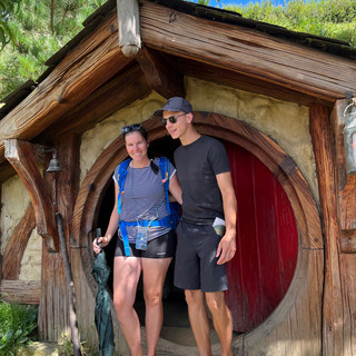 Wir fuhren mit anderen erst mit einem Bus durchs Farmland und dann sahen wir die Hobbithöhlen. Nur eine durften wir betreten und dank einiger asiatischer, selbsternannter Selfie-Stars dauerte der Rundgang so seine Zeit. Das war echt schräg, wie sie sich immer allein vor gefühlt jedem Busch mit 10 „verschiedenen“, aber immer gleichen Gesichtern fotografierten. Arme Welt…Uns beiden war jedes einzelne Foto unangenehm, aber ein paar Erinnerungsfotos wollten wir dann doch. Wir sind ja sowieso immer froh, wenn wir noch ein sauberes Shirt haben und waren bei weitem nicht „angemessen“ gekleidet, aber wenigstens konnten wir genießen und nahmen unsere Umwelt noch war. Manche sind echt gestört. Was macht Frau denn mit tausend gleich aussehenden Selfies pro Tag? Die waren nicht mal - sorry - besonders hübsch und es war Eric und mir ein kleines Vergnügen ständig in ihre Fotos zu purzeln oder im Weg zu stehen, manche merken es nämlich einfach nicht und unser bester Trick: sich ans Ende der Gruppe fallen zu lassen, dann hat man nämlich auch keine Leute mit drauf ;) Ein kleiner Nachteil war vielleicht, dass so die anderen vor uns die von den Angestellten versteckten Schokis (Weihnachten...) vor uns fanden. Aber immerhin fanden wir jeweils ein Karamell-Bonbon.