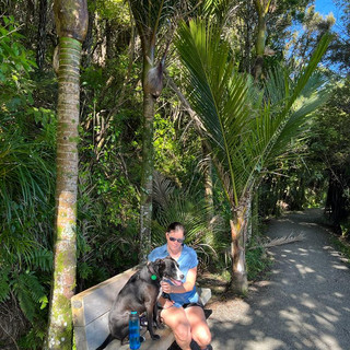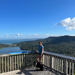 Wir probierten mal den Sandwichtoaster, alles einmaliger Luxus, den es auszukosten gilt und weil wir für abends noch Auflauf übrig hatten, starteten wir die großen Tagesrunde etwas eher. Stella musste zerknirscht eine 10minütige Autofahrt in Kauf nehmen und dann starteten wir am Arataki Visitor Center. Der Großteil der Runde war angenehm schattig zwischen den Kauribäumen, wir gaben der Maus ausreichend Wasser und machten Päuschen und genossen einen herrlichen Ausblick, der uns überraschte. Wir waren froh uns spontan für diese Runde entschieden zu haben.
