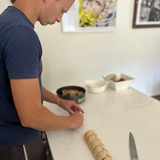 Die letzten Stunden mit unserer lieb gewonnenen Fellnase standen an. Nach dem Frühstück liefen wir unsere Morgenrunde und danach ging’s ans Packen. Ich sag’s euch…innerhalb einer Woche hatten wir uns ganz schön ausgebreitet in Küche, Wohnzimmer und unserem Schlafzimmer. Die letzten Shirts trockneten noch, dann wusch ich die Bettwäsche und unsere Handtücher, saugte durch, brachte den Müll raus, räumte den Spüli leer. Wir wollten, dass sie sich wohlfühlen wenn sie vom Urlaub heimkamen. Denn wir wissen alle: das ist immer komisch. Eric fuhr noch ganz fix eine Milch holen, denn er wollte unbedingt noch seine geliebten Zimtschnecken backen. Die Zeit reichte grad noch so und so konnten wir ihnen zu unserer kleinen Willkommensnachricht auch noch frische Zimtschnecken hinstellen. Der Rest war für uns; wir hatten auch noch Obstsalat, Salat und Spiegelei. Dekadentes Resteessen sozusagen. Wir kühlten nochmal mit der Klimaanlage runter, schlossen die Jalousien, machten Musik an, liefen nochmal eine mini kleine Runde mit Stella und dann hieß es Abschied nehmen. Mir kullerten die Tränen, die kleine Maus würde mir ganz doll fehlen. Mir fehlte ja schon mein Mono. Sie bellte als wir alles vor die Tür stellten, dann schlüpften wir schnell durchs Garagentor. Zurückblicken konnte ich nicht :(