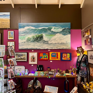 Wir trödelten herum, Toiletten waren nebenan, es gab Toast und wir konnten das Wasser auffüllen. 11 Uhr starteten wir dann richtig in den Tag, dem ersten des Jahres. Wir planten grob mit Ollis Tipps die nächsten Tage durch, dann fuhren wir weiter. Wir hatten es auf den Coastal Walk abgesehen. Doch dann hörte der Asphalt auf und wir fühlten uns nicht nur schrecklich an Chiles Straßen erinnert, nein wir wussten auch nicht, ob wir diese steinige Huckelpiste mit dem gemieteten Fahrzeug fahren dürfen. Das stand da sehr schwammig geschrieben, was die Versicherung abdeckt und der Besitzer konnte per GPS mittracken. Wir schickten also eine Nachricht und baten um Ja oder Nein und als nix kam, drehten wir um. Ich wollte nach 15min gern an einer kleinen Galerie halten und verliebte mich prompt in ein gemaltes Wellenbild für ca.4000€ (und wurde aufgefordert ein Foto zu machen). Die Farben würden herrlich über unseren Esstisch im Wohnzimmer passen :D Und das Bild strahlte eine Lebendigkeit und Dynamik aus, es war fantastisch.