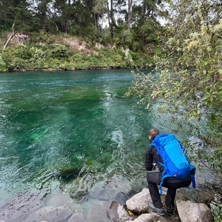 Hoffnung stirbt ja bekanntlich zuletzt. Aber wir alle haben ein Ablaufdatum, davor ist also auch nicht unsere Hoffnung gefeit. Natürlich sah der Himmel genauso traurig aus und ließ seinen Tränen freien Lauf, wie auch die vergangenen Tage. Wir schauten uns trotzdem mal den Fluss an, neben dem wir campierten und weil wir schonmal fast da waren, fuhren wir auch zu den Huka Falls. Das war immerhin kostenlos und zugegeben, es waren jetzt nicht die eindrucksvollsten Wasserfälle, die wir je gesehen haben, aber der Farbton war herrlich. Das Wasser rauschte türkisfarben an uns vorbei und als wir dem Fluss aufwärts folgten, schimmerte er glasklar smaragdgrün.