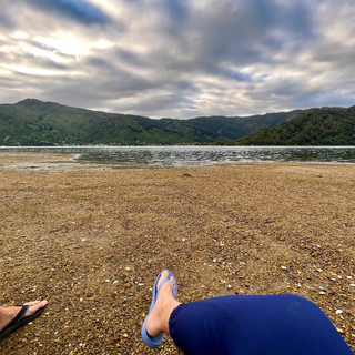 Nach dem Frühstück erhaschten wir nochmal einen letzten Blick in die Bucht und freuten uns besonders über die auf dem Wasser glitzernden Sonnenstrahlen. Auf dem Küstenweg nach Nelson hielten wir an einem Aussichtspunkt (in 10min fußläufig erreichbar) und sahen fast kein Wölkchen am Himmel. Wir stoppten ebenfalls an der Pelorus Brücke, denn dort konnte man - ähnlich wie wir es in Korsika geliebt hatten - von den Felsen in den Fluss springen. Es war zwar sonnig und das Wasser kristallklar; es sah total einladend aus. Aber abgesehen davon, dass das Wasser eisig war, wurden wir innerhalb weniger Sekunden von den schwarzen kleinen sandflys aufgefressen. Die beißen sich bis aufs Blut durch, sehen dabei ganz unschuldig aus und hinterlassen ein fieses Jucken. Die einzige „Gefahr“ die Neuseeland (abgesehen von irren Autofahrern) zu bieten hat. Dafür aber gefühlt überall. Wir rannten förmlich zum Auto zurück und sprühten uns mit Anti-Insektenspray ein.