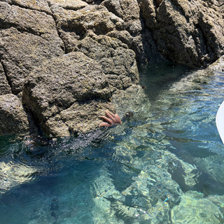 Als wir wieder zurückpaddelten, war der Wasserspiegel gesunken, wir passten nicht mehr durchs Felstor, sahen aber dafür viele rote Seesterne. Es war gar nicht so leicht sie aus dem Kajak bei leichtem Wellengang zu fotografieren :D