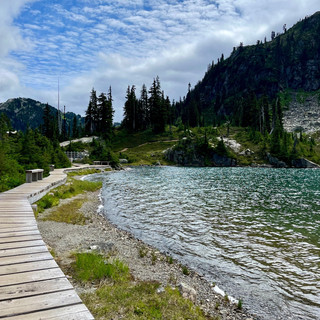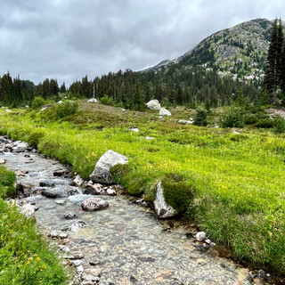 Wir sind heute 22km gelaufen und völlig k.o., denn 11km ging es bergauf zum Rainbow Lake mit Blick auf den Rainbow Mountain. Woher die Namen kommen, wissen wir auch nicht. Wir haben auch den Gin & Tonic Bach überquert ;) Insgesamt waren wir 7h unterwegs, mit 900hm, Lunch gab es am See mit Blick auf die Berge, mitten im Callaghan Lake Provincial Park. Uns war schon mulmig hier durch Bärengelände zu laufen und ausgerechnet wenn man mal laut reden soll, blieb ich sprachlos. Ich musste schließlich Atmen…und die Mücken! Richtig schlimm. Es gibt hier Schwarzbären und Grizzlys, letztere erkennt man wohl an den Schulterhöckern. Heute haben wir keine gesehen.