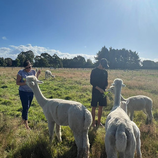 Eigentlich kostet eine Stunde Farmtour hier stolze, doch recht übertriebene $40 p.P. (was wir nie bezahlt hätten), aber Paula hatte erfolgreich gefragt und durfte uns einfach so rumführen. Darauf freuten wir uns sehr und so lohnte sich die Autofahrt doppelt. Als wir ankamen, gingen wir auch direkt auf die Weide und begrüßten lauter flauschige Alpakas. Mit frischen Weidezweigen, die für die Alpakas sozusagen wie für uns leckere Eiscreme war, lockten wir sie näher und konnten sie füttern. Das allein war ja schon ein Spaß, aber Paula fing uns ein kleines, etwa einwöchiges Alpaka-Baby ein und ich durfte es halten. Eric traute sich nicht. Das war sooo süß! Und flauschig!