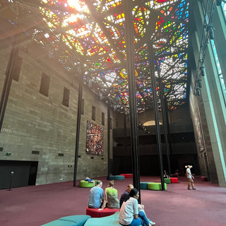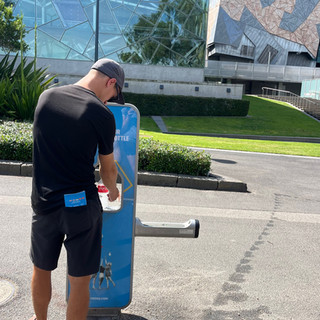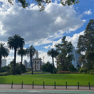 Deshalb kauften wir im Queen Victoria Market den erfrischenden "Stress Down Smoothie" und spülten damit eine waschechte Bratwurst runter, lecker! Für die vielen asiatischen Leckereien auf der Victoria Street hatten wir im Moment keinen Platz mehr im Bauch. Der Schlemmtag sollte aber noch weiter gehen. Denn nach einem kostenfreien, anderthalbstündigen Besuch der National Gallery of Victoria, kurz NGV, ermüdeten wir zunehmend im Queen Victoria Park - so sehr, dass wir immer langsamer in der Hitze vorankamen. Wir entschieden uns gegen den botanischen Garten und für das „Sommer-Paradies“, wo auch an einem Donnerstagabend das Leben blühte.