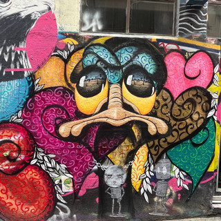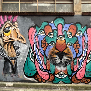 Danach liefen wir erstmal drauf los. Sowohl Adam als auch ein australisches Pärchen, welches in Neuseeland den Heli-Hike mit uns gemacht hatte, hatten uns für die Innenstadt Empfehlungen gegeben. Wir sahen lauter Graffitis, z.B. in der Horsier und der AC/DC Lane. Dort machte eine junge Jenaerin ein Foto von uns und wir entdeckten überall die lustigen Punker-Vögel gesprüht.