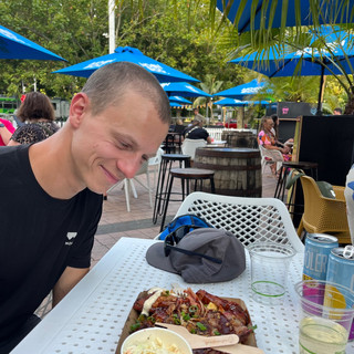 Wir hatten auch in der zweiten Nacht das weiche, komfortable Bett genossen und frühstückten. Währenddessen lud ich fleißig Videos und Bilder hoch, damit ihr pünktlich zum WE weiterlesen könnt. Eric aktualisierte unsere ganzen Apps und offline-Karten. Adam arbeitete heute zu Hause im Zimmer nebenan und schlug vor, dass wir den 15min entfernten Wochenmarkt besuchten. Aber wir waren (sicher zu seiner Verwunderung) sehr glücklich über das 5G Wifi und mussten auch noch alles wieder einpacken und dann 11:15 Uhr ein Uber nehmen. Die heutige Höchsttemperatur wird bei 39 Grad liegen, da hatten wir nicht so die größte Lust auf Stadtbummel und nahmen deshalb auf nicht die öffentlichen, sondern ein Uber von Tür zu Tür. Wir fuhren fast 50min etwas raus aus der Stadt um unseren privat gemieteten Campervan abzuholen - der bisher größte und luxuriöseste. Wir können sogar darin stehen! Aber weil er privat vermietet wird (über Camplifly) war er günstiger als die kleinen. Die Wasserpumpe ist leider defekt, aber ihr Mutterinstinkt (wie sie es nannte) veranlasste sie dazu uns ohne Aufpreis ein Bettwäsche-Set und Handtücher dazuzugeben, sie zeigte uns alles und es bot nicht nur mehr Geschirr als jemals zuvor, sondern auch grundlegenden Gewürze, Öl, Reinigungsmittel, Küchenrolle, zwei Wasserflaschen und Taschentücher standen bereit und um alles zu komplettieren fuhren wir zu Aldi und füllten den Einkaufswagen.