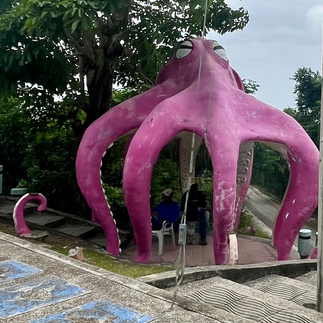 Angekommen in San Andres, wo wir zwischennächtigen würden, regnete es in Strömen. Das durfte doch nicht wahr sein. Wir kauften in einer Apotheke eine neue Sonnencreme, stülpten die Regencover über die Rucksäcke, holten die Regenschirme raus und stapften tapfer weiter. Unser Hostel war in fußläufiger Nähe, da wollten wir nicht schon wieder so ein teures Taxi nehmen. Wir schauten auch unterwegs mal nach der GoPro12, weil San Andres eine Art steuerfreies Shoppingparadies (mit viel zu vielen Shops und Menschen) war, aber der Preis war der gleiche wie online, wo wir uns bei Problemen hinwenden könnten, also geduldeten wir uns noch Erics Geburtstagsgeld auszugeben ;)