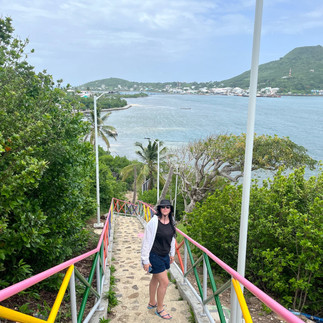 Bunte, schöne Häuschen standen hier, aber auch hier sah man die Nachwirkungen des Hurrikans. Wir liefen auf eine Aussicht und lachten über zwei Leguane, die jeweils auf zwei Kanonenrohren in der Sonne lagen und die Aussicht genossen. Es war brütend heiß und schwül und wurde sowieso Zeit für den Abschied. Wir genossen nochmal den Fahrtwind, ich knipste sonnige Inselfotos, wir holten unser Gepäck und Eric fuhr mich zum Flughafen.