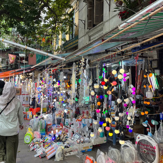 Wir liefen zum Bus und schauten schonmal unterwegs, wo es Moskito-Netze gab. Dann nahmen wir für zusammen niedliche 55 Cent den Bus ins Stadtzentrum von Hanoi. Die Tickets verkaufte ein Mitarbeiter, der hinter dem Fahrer saß und auch immer mal wegdöste. Wir entschieden uns ein wenig eher auszusteigen und zu Fuß das Flair der Stadt einzusaugen. Wir liefen durch das v.a. Bei Touristen sehr beliebte und sehr geschäftige Alte Viertel, sozusagen die Altstadt, wo es wirklich noch sehr anders zuging, als wir es in Deutschland bzw. überhaupt Europa gewöhnt waren. Es gab Läden für Lichterketten, Läden für Lampen, Läden für Ventilatoren, für Glühbirnen, für Grabsteine…bei manchen erkannten wir gar nicht, was für ein Geschäft es war und auch auch die Haare konnte man sich direkt auf den Fußwegen schneiden lassen. Ich habe versucht euch das Flair der Stadt einzufangen, aber wie auch bei Landschaften ist das eher schwierig. Es fehlen die Gerüche & Geräusche und der Rundumblick, aber verschafft euch einen kleinen Einblick. Am schönsten/ fotogensten finde ich ja immer die beladenen Fahrräder, mit Blumen, Früchte, Nüssen uvm.