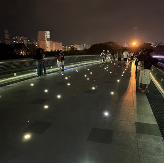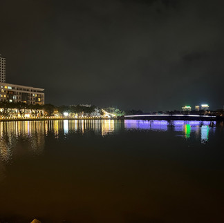 Wir fuhren weiter durch die verschiedenen Distrikte (wir wohnen im Zentrum, Distrikt 1) und fuhren nun ins teuerste und somit auch ruhigste Distrikt 7. Dort wohnen v.a. Japaner und Koreaner, die Läden und Restaurants sind teurer, die Straßen breiter, die beleuchtete Brücke ruhig und entspannend. Hier kommen viele gern am Wochenende her um der Hektik der Innenstadt zu entfliehen. Tinh meinte wir könnten ja alle mal Ausschau nach einer Freundin für ihn halten :D Sie beobachteten auch Eric und mich ganz genau, piesackten ihn immer wieder mit heiraten :D Und dann, das fand ich voll süß, stellten sie fest, dass Eric jedes Mal wenn wir auf die Mopeds stiegen und losfuhren den Kopf zu mir drehte, um sich zu vergewissern, dass alles gut war. Wie niedlich, das war mir nicht mal selbst aufgefallen. Es ging zurück, wir hielten in Distrikt 4 um einen Breiapfel-Smoothie zu probieren, aber Passionsfrucht schmeckte dann doch besser. In Distrikt 4 hatte es wohl vor Jahren viele Gangs gegeben, jetzt ist das Viertel viel mehr für Street Food bekannt - eine positive Entwicklung :) Und insgesamt vier Stunden später, fast pünktlich auf die Minute, wurden wir wieder am Hostel abgesetzt. Na das hatte sich ja richtig gelohnt! Wir gingen nochmal fix duschen und plumpsten dann ins Bett. Morgen früh würde uns der Wecker aus dem Schlaf holen müssen, also trödelten wir nicht herum.
