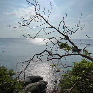 Aber nun! Back to Business meine Lieben. Ich bin noch nicht zu 100% wieder hergestellt, aber der Duracell-Hase in mir wollte jetzt mal bissl was sehen. Damit wir die Entspannung und Ruhe nicht völlig über den Haufen warfen, bevorzugten wir einen ruhigen Strand und da eignete es sich hervorragend wieder bei unserem Hostel rechts den Hügel hoch und wieder runter zu fahren um zum versteckten Sai Nuan Beach zu fahren. Dort waren mit uns nur ca.4 Leute und wir fanden ein schattiges Plätzchen. Hier ist es einfach nur affenwarm und leider war auch das Wasser keine Erfrischung, denn das war ebenfalls warm. Ähnlich wie in Costa Rica :D Aber die Bucht war wunderschön und während Eric auf den Felsen herumkraxelte, weil es nun mal seinem Naturell entspricht, ging ich meinem inneren Drang nach und suchte nach Muscheln und bewunderte die zahlreichen, in den Bäumen hängenden Korallen-Mobilées.