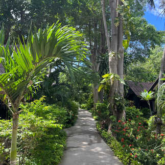 Nachdem das erledigt war, fuhren wir zweimal zum Pier. Dort, wo wir das Ticket gekauft hatten, durften wir unser Gepäck abstellen. Dann gaben wir den Roller ab. Heute war ein anderer junger Mann da; er checkte unser Formular, Eric stand schon mit Portemonnaie bereit, aber er winkte ab. Eric fragte, ob er sicher sei und er meinte, ja das gehe klar. Wir waren verwundert, aber konnten so mit dem nun „gewonnenen“ Bargeld in der Hitze nach einem Besuch bei der Sandwich-Lady an unserem Lieblingsstand noch einen Smoothie kaufen und mit dem liefen wir dann am Strand, später auf dem schattigen Weg, zurück. Plötzlich hielt der junge Mann vom Motorrad-Verleih neben uns auf seinem Roller (er ist herumgefahren um uns zu suchen), entschuldigte sich, dass wir doch noch etwas nachzahlen müssen, da hatte sein Chef ein wenig gemeckert und wir lachten über die Situation, weil wir schon das Portemonnaie in der Hand gehabt hatten und versicherten uns, dass er nun keinen Ärger bekäme. Er war erleichert.