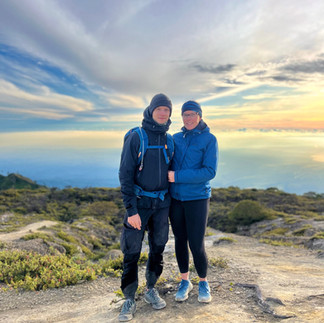 Wir wären gern alle vier einfach durchgelaufen und eher oben am Krater angekommen. Billy war ein kleiner, kugeliger Mann, der humpelte und viel zu viel rauchte. Wir befürchteten er würde einfach zusammenbrechen und bemühten uns gaaanz langsam mit ihm zu laufen und Smalltalk zu führen - wann immer sein Atem reichte. Herrgott…das war nun also unser Guide. Nicht gerade die trefflichste Wahl, aber er lief Vulkane sieben Tage die Woche hoch. Er möge seinen Job, hatte davor schon auf dem Schiff, in Hotels u.a. gearbeitet. Unsere zwei super Snobs liefen weit vor uns. Sie waren generell sehr ruppig und respektlos von oben herab. Was sie in der Welt wollten, war mir schleierhaft. Während wir mit Billy, der uns immer wieder versicherte alles sei gut, nur schleppend vorankamen, färbte sich der Himmel lila-pink und wir staunten über die Wattewölkchen, auf die wir nun von oben blickten. Es sah aus wie im Märchen.