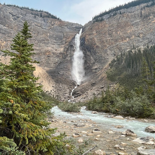 Dort wurden uns kurze, aber schöne Aussichten und Pfade empfohlen. Für heute genau richtig. Wir fuhren die Yoho Valley Road nach oben; Serpentinen, die den Kakao in meinem Magen umrührten. Doch auf dem Parkplatz angekommen, sahen wir schon den Takakkaw Falls. Mit einer Höhe von beeindruckenden 380m gehört er zu den höchsten Wasserfällen Kanadas. Er ist auch zu Fuß, bis auf das letzte Stück, sehr gut erreichbar und hat man erstmal die Massen an verrenkenden Selfie-Horden überwunden, kann man selbst die Steine erklimmen und ganz in Ruhe Erinnerungsfotos schießen ;) Und man ist so unfreiwillig auch auf allen Fotos der unten gebliebenen mit drauf - ich sollte zukünftig auffälligere Kleidung tragen :D