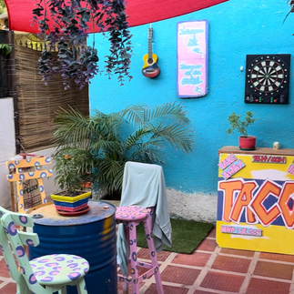 Wir stapften zurück und Eric fragte was der Plan für den Nachmittag sei. Ganz einfach: Pool & Pizza. Mehr brauchte ich heute nicht mehr. Das war die erste Unterkunft mit Pool, einem schönen noch dazu, den gedachte ich auch zu nutzen. Wir cremten uns ein und chillten. Allerdings wurde der Hunger zu groß, sodass wir im Hostel erstmal zwei Tacos pro Näschen bekamen. Am Poolrand wurde schnabuliert, immer mal ein Foto hochgeladen, dann chillten wir auf der oberen Terrasse noch in den Hängematten. Hier feierte man den Nationalfeiertag noch einen Tag später (heute war Sonntag) und die ganzen China-Böller begannen uns auf die Nerven zu gehen und scheuchte panisch alle Vögel auf. Zwischendurch zog auch mal eine Parade durch die Straßen - die Kolumbianer lieben Lärm.