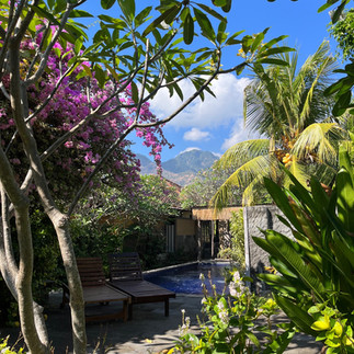 Am nächsten Tag schonten wir Eric noch immer. Sogar Komang schrieb uns und fragte ob es Eric gut gehe. Süß. Eric ruhte, ich las im Garten. Zum Frühstück hatten wir heute zwei Toast mit Omelette & Marmelade gewählt. Dazu gab es Obst & Tee. Wir ließen es ruhig angehen und waren von dem Garten mit Blick auf die Berge nach wie vor völlig verzaubert. So langsam ging der Zauber Balis ungewollt auf mich über ;)