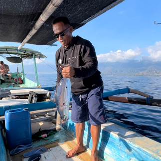 Lange konnten wir gestern nicht aufbleiben, denn der Wecker klingelte 5:30 Uhr. Als ich das Handy in die Hand nahm um den Alarm auszustellen, sah ich die Nachricht, dass uns Cencen schon vor 20min geschrieben hatte, er würde eher kommen. Pech für ihn, ich schrieb ihm, dass wir gerade erst erwacht seien und wir noch 5min brauchen. Cencen war ein Fischer, dessen Nummer wir von Marie bekommen hatten. Wir hatten vorher sehr oft von dem Ort Lovina hier oben an Nordbalis Küste gelesen; er ist ziemlich mittig. Von da aus gibt es unzählige Delfin-Watching-Touren, aber wir hatten uns schon gedacht, dass das nichts gutes bedeuten konnte. Und dann hatte ich auf einem Blog einer Kalifornierin ihre Schilderung gelesen, wie schlimm sie ihren Ausflug fand. Sie warnte, dass zur Hochsaison bis 60 Booten mit leckenden Motoren über das Wasser schossen und den Delfine quasi nachjagten und sie umzingelten. Es gibt sicher viele Touristen, denen das völlig Wurst ist, uns aber nicht. Und Marie hatte uns deshalb erzählt, dass der Fischer früh rausfahre und auch Touristen mitnähme. Wir sind hier geografisch etwas weiter entfernt, gut eine Autostunde von Lovina, aber er sähe oft Delfine, wir könnten den Sonnenaufgang überm Meer erleben und selbst fischen. Na das klang doch wunderbar! Wir hatten ihm geschrieben und uns für heute verabredet. Wir zahlten zusammen 39€ an ihn und seine Familie.