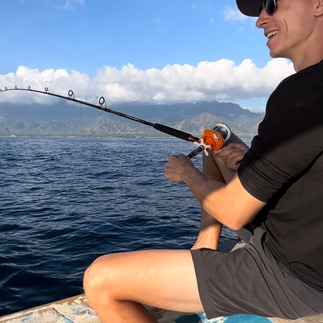 Dann fragte Cencen ob Eric jetzt auch mal fischen wolle. Haha das hatte Eric noch nie getan und auch noch nie interessiert, aber warum nicht. Er bekam eine große Angel in die Hand gedrückt und kurz gezeigt, wo er kurbeln musste und dann saß er da. Wir schrieen gleichzeitig verzückt auf, als seine Angel sich schließlich bog. Er kämpfte und wir lachten alle als er den Fisch einzog. Sein erster! Cencen stand schon bereit um ihm zu helfen. Dann klopfte er den Fisch mit einer Flasche tot. Oups. Tja, das gehört dazu und muss man als Nicht-Vegetarier ebenso wissen. Der Franzose hatte schon einen und dann fischten sie die Thunfische um die Wette. Einen musste der Franzose aufgeben, weil er sonst mit Erics Fang in die Quere gekommen wäre. Eric fischte ganz dem Motto aller guten Dinge sind drei, der Franzose hatte auch noch einen zweiten und als ich die Angel übernahm, fielen Cencen bald die Augen aus dem Kopf, aber er grinste und rief: „Fisher woman!“ Ich war als Kind ein paar Mal mit meinem Papa am See angeln gewesen, aber da man so ruhig sitzen musste, war das nicht ganz so mein Ding :D Als Schnatterinchen konnte ich als bisherigen Erfolg auch nur einen in Dänemark geangelten Baby-Aal (mit Kinderangel) verzeichnen, den wir sofort wieder freigelassen hatten; armes Tier. Aber bei mir biss heute ganz schnell ein Fisch an und ich hatte alle Mühe! Die Angelsehne schien unendlich lang zu sein, meine arme Hand tat schon ganz weh, so dolle griff ich zu. Die drei Männer lachten mit mir und zack war unser vierter Thunfisch aus dem Wasser gezogen. Wahnsinn! Aber danach beobachtete ich lieber wieder Delfine :D Nach gut vier Stunden, also kurz nach zehn fuhren wir zurück. Das war richtig cool gewesen.