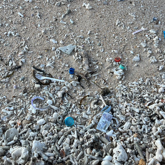 Ein bisschen Bewegung brauchten wir aber auch noch und so bestaunten wir lauter Muscheln und Schnecken, die am Strand zwischen den leider zahlreich tot angespülten Korallen lagen. Umso weiter wir vom Geschehen wegliefen, umso mehr Müll häufte sich hier. Es war einfach eklig und traurig. So einiges war zerstört und lag herum. Wie eine Geisterinsek…Eric hatte gelesen, dass es auf den Inseln vor ca. 5 Jahren ein Erdbeben gegeben hatte, schließlich liegen die indonesischen Inseln in einer seismisch sehr aktiven Zone und kurz darauf brach Corona auch über diese Ecke der Welt ein. Deshalb war hier so einiges verlassen und (noch) geschlossen, aber in unseren Augen war das gerade ein Grund die Insel vom Müll zu befreien und aufzuräumen! Zeit war da! Aber so richtig zu schätzen scheinen sie ihren Flecken Erde hier nicht :( Eigentlich wollten wir auch anlässlich Erics Geburtstag Schnorcheln oder eine Massage genießen, aber hier war es wie ausgestorben und so langsam begannen wir unsere Entscheidung für diese Insel zu bereuen. Es wurde noch schlimmer als wir feststellten, dass es in unserer Unterkunft nur leicht salziges Wasser gab, also unter der Dusche und am Waschbecken also mussten wir Wasser kaufen um Zähne zu putzen. Oh je. Warum hatte das keiner in seinen Bewertungen geschrieben? Wir zogen dennoch los um den Sonnenuntergang anzusehen und kamen am Salzsee der Insel vorbei. Dort waren aber viele Holzplanken beschädigt und löchrig, sodass wir weiter zum Strand liefen. Schön war es ja, wie die Tische mit Kerzen bestückt aufgereiht am Strand standen und wir bestellten ein kleines Radler und schauten dem Farbenmeer am Himmel zu. Als es dunkler wurde, sahen wir im Wasser drei Lampen. Aber, so wurden wir aufgeklärt, handelte es sich dabei nicht um Nachttaucher sondern um einheimische Fischer, die mit Harpunen auf die Jagd gingen. Hier war das Wasser flach und sie tauchten ab und an ab. Einen der drei Männer sahen wir erfolgreich mit seinem Fang über den Strand laufen. Gleichzeitig kamen in der Bar nebenan die vielen bunten Lichter zur Geltung und wir zogen um. Von Nahem sahen wir, dass es lauter alte Plastikflaschen und -Geräte waren, witzige Idee und Eric bekam einen frisch gegrillten Maiskolben mit Knobibutter. Wir stießen mit blauen Cocktails an. Das war jetzt nicht ganz der Geburtstag gewesen, den wir uns vorgestellt hatten, aber wir holen das nach.