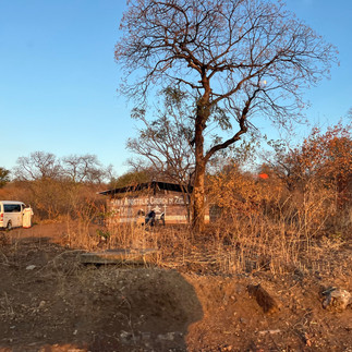 Auf dem Muchenje Campingplatz kamen wir gerade zum Rezeptionsschluss an, aber wurden total lieb (von einem weißen Südafrikaner, dem Besitzer) empfangen. Er hatte noch Plätze frei, gab uns die Nr.5, seinen Lieblingsplatz unter einem stattlichen Baum und nahm sich alle Zeit uns so einige sinnvolle Tipps und Erklärungen zu geben. Uns dämmerte: das beste Auto hatten wir nicht abbekommen. Denn es besaß nur einen 80l Tank, während viele andere wohl über das doppelte verfügten. Er warnte uns auch: ohne zweites Auto und Satellitentelefon sollten wir ja nicht durch die Kalahari Wüste fahren. Okay, dann blieb uns mehr Zeit für die anderen Regionen; alles ging ja eh nicht. Aber er gab zu bedenken, dass wir wohl kaum drum herum kamen über Namibia von oben herum zu fahren - oh nein. Nochmal Grenzen überqueren. Uns schwante jetzt schon nichts Gutes, aber er hatte uns ein wundervolles Stück Nationalpark für morgen empfohlen in dem wir viele laute Tiere würden sehen können. Na immerhin.