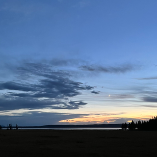 Auf dem Fishing Bridge Campground erfuhren wir leider ebenfalls eine Abfuhr, sodass wir am Lake Yellowstone vorbei den East Entrance ansteuerten. Da wir diesmal noch nicht wussten wo wir stehen werden, hielten wir kurzerhand am Seeufer und kochten & aßen da im letzten Sonnenlicht. Wirklich seltsame Tiergeräusche, Eric vermutet Elche, begleiteten unser Abendessen und als wir losfuhren war um uns herum allumfassende Schwärze. Man sah nichts. Dafür aber ein toller Sternenhimmel. Wir fuhren also aus dem Park raus und waren so müde. Wir hatten wirklich keinen Nerv noch ewig weit zu fahren. Am ersten Gebäude, was wir sahen, bog ich scharf links ein. Es waren Lodges und Eric ging erschöpft rein und fragte ob wir auf dem Parkplatz stehen dürfen. Die Antwort war zu unserer hellen Freude ein klares ja. Das sparte Nerven, Sprit und Kilometer und wir waren nicht allein. Er wies uns sogar noch auf die Waschräume hin. Herrlich! Ein richtiges Waschbecken und richtige Toiletten. Allerdings wies er uns auch darauf hin, dass hier ein Grizzly gesichtet worden ist und wir vorsichtig sein sollen, vor allem früh beim Aufstehen. Na super, ihr könnt euch ja vorstellen, wie wir auf die Toiletten gehuscht sind und wie schnell wir bettfertig im verriegelten Auto lagen :D