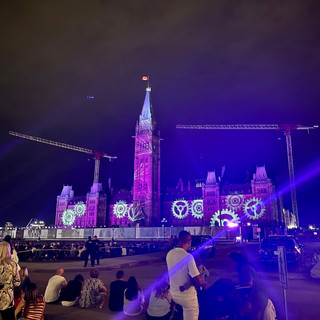 Da es ein anderer Bus war, kamen wir an einer anderen Ecke raus und sahen große blaue Lichtstrahlen und Sergui erzählte, dass sei die Lichtshow am Parlament, die er selbst noch nie gesehen hat und die nur Do-Mo ist (es war Montag) und ich so: „Well, let´s go, hurry up guys!“ und so liefen wir schnellen Schrittes und konnten 15min das Spektakel live erleben…sooo schön! Die kanadische Geschichte wurde per Lichtshow ans Parlamentsgebäude geworfen und bilingual auf französisch und englisch erzählt. Magisch.