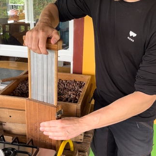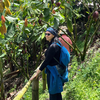 An der Plantage Finca Evelyza wurden wir schon freudig erwartet. Der Name ist eine Kombination der beiden Vornamen der Töchter des Besitzers. Süß. Die Tour war zwar auf Englisch gebucht, aber natürlich versuchten wir Spanisch zu antworten, worüber man freudig überrascht war. Luis war unser erster Guide und erzählte uns, dass der Besitzer Mario aus einer "Kakao-Familie" stamme und sein Wissen aus dem Süden mitgebracht habe. Hier auf 1.400m sei es eigentlich zu hoch um Kakao anzubauen (aber ideal für Kaffee), aber er beschnitt und kreuzte die Pflänzchen und schuf so drei Sorten. Weltweit spricht man von drei Hauptsorten. Hier in Südamerika, dann in Afrika und Trinidad. Wir waren gerade zu einer Art "Frühling" hier (obwohl es diese Jahreszeit hier nicht gibt, es gibt Regenzeit und weniger Regen :D), d.h.die Pflanzen bekamen gerade lauter neue, rötlich schimmernde Blätter. Blüten, aus denen Kakao wird, wuchsen jeden Monat ganzjährig und so konnte Mario auch jeden Monat auf seinen 4 Hektar ernten. Er baute aber auch noch Kochbananen, Bambus und Avocados an - natürlich die leckeren großen. Wir kosteten das Innere der Kakaobohne, durften drei Stück im Mund lutschen und die Aromen herausschmecken wie Mango, Maracuja und Litschi. Dann wurde ausgespuckt. Hier wohnten kleine Nutrias, die sich über den Biomüll freuten und wir sahen sie sogar aus dem beeindruckenden Bambuswald kommen. Ich könnte jetzt noch weiter ins Detail gehen, aber das würde euch ja nur den Spaß nehmen, die auch mal so eine Tour machen wollen. Luis jedenfalls hakte immer freudig nach, ob wir es "interesting" fanden und wir nickten begeistert. Luis zeigte uns noch die wichtigste Station: den Fermentierungsprozess, ohne den es keine Schokolade geben würde. Diese Schritt hatten den Inkas noch gefehlt; sie hatten früher die Blätter und das Innere der Frucht als eine Art Suppe gekocht und waren damit auch sehr happy gewesen. Schoki hebt eben die Stimmung. Und das Innere wurde damals als Zahlungsmittel genutzt. Was für eine zauberhafte Vorstellung sich in Schokolade vergüten zu lassen...hach.