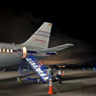 Wir bezahlten und liefen zum Busterminal am Ortseingang. Dort standen wir wartend in der Schlange bis der Bus nach Armenia abfuhr. (1,50€) Dies war die Hauptstadt der Region und wir hatten Glück noch zwei Plätze zu bekommen. Die Fahrt dauerte erschreckend länger als die Hinfahrt und wir schauten immer wieder nervös auf die Uhr, auf Google Maps und aus dem Busfenster. Endlich am Busterminal angekommen, wollten wir es nicht riskieren wieder mit so einer Schnecke zum Flughafen zu gondeln und mit Hilfe einer netten Dame nahmen wir ein Taxi. Ohne Wifi konnten wir nicht über die App buchen, also hatte sie nach dem Festpreis gefragt. Wir wurden immer nervöser, der Flughafen war verdammt weit draußen. Der Fahrer beruhigte uns wir hätten Zeit, die Handyuhr verriet aber was anderes. Wir stürmten rein und erfuhren, dass ich 7€ zahlen müsse, weil ich nicht online eingecheckt hatte. Mal wieder Lehrgeld. Dafür pressten wir vor ihren Augen beide Rucksäcke in Eric Flightcover um so nur ein Gepäckstück zu bezahlen und als wir dann keine 30min vor Abflug unsere Tickets in der Hand hielten, rannten wir den Gang zum kleinen Security-Check. Der dort wartende Beamte fragte belustigt warum wir so rennen, wir hätten doch Zeit und als wir um die Ecke gingen, verstanden wir warum alle so chillten. Hier gab es nur drei kleine Gates nebeneinander und wir hatten sogar noch Zeit uns kurz hinzusetzen. Wir flogen mit Avancia und es war der kürzeste Flug unseres Lebens. Dafür kamen wir nach kurzen Turbulenzen 35min später in wirklich heftigen Regenfällen in Medellin an. Ach herrje, vor uns die Sintflut. Einzeln bekamen wir an der Tür einen Regenschirm, Eric fuhr zu meinem Schrecken einen Bus vor mir ab. Das entschied hier das Bodenpersonal.