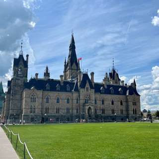 Eine Wiese wurde gesprenkelt und wir hüpften mal schnell durch und da die Sonne auf der anderen Brücke bereits so brutzelte, folgten wir dem Kanal bis zum Rideau Shopping Center und sind nun stolze Besitzer neuer Kopfbedeckung. Safety first. Wir sahen uns die Parlamentsgebäude am Tag an, liefen noch durch das Byward Marktviertel und weiter (auf Serguis Empfehlung hin) den Kanal entlang. Mit Päuschen im Park.