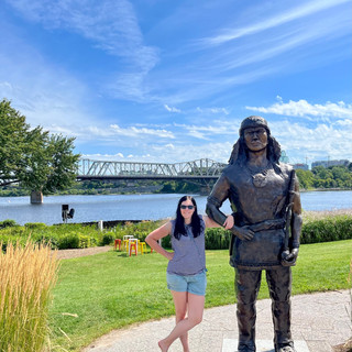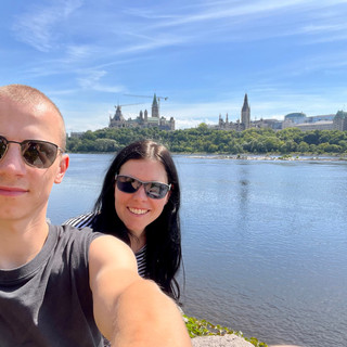Wir gingen zuerst über die kleinere Brücke und genossen von der Seite „Gatineau“ den Blick auf die Parlamentsgebäude am Fluss in Ottawa. Wir schlenderten barfuß den Fluss entlang und versuchten mal voll Insta-mäßig ein Foto, aber niemand möchte einen Klops in der Landschaft sehen, deshalb meine Lieben, gibt es einfach wieder ein Selfie. Fotogen sind wir nicht :D