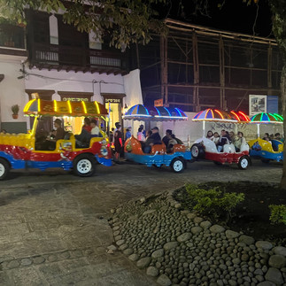 Weil recherchieren aber hungrig macht, gingen wir erstmal auf Empfehlung aus der Tür raus, links um die Ecke auf einen Parkplatz und man mochte es kaum glauben, aber hier waren in zweistöckigen Containern lauter kleine Street Food Stände. Nach vorheriger kurzer Recherche entschieden wir uns für Konico, einer kleinen Küche ganz links oben. Die gewählten, gefüllten, knusprigen Waffeln wurden uns unten an die Tische gebracht, samt kleinen smalltalk. Wo wir herkamen, wo wir schon waren, wo wir noch hin wollen, wie uns Kolumbien gefällt. Sehr gut, vor allem nach wiederholt gutem Essen! Zusammen zahlten wir 8€ mit riesigen Chips-Pommes.