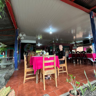 Dann breiteten wir alles im Auto über den Sitzen aus, fuhren in Quepos an Bankautomaten und es dauerte etwas bis wir einen funktionierenden gefunden hatten. Von dem Problem hatte Jake schon berichtet. Am Ende ging Eric in eine Bank und musste dort wohl einen "Stuhltanz" aufführen. Ein Angestellter achtete akribisch darauf, dass alle immer einen Stuhl weiter rutschten :D